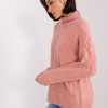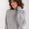 Sweter o luźnym, klasycznym kroju z długimi rękawami. Wykonany z miękkiej tkaniny zapewni komfort i ciepło w chłodniejsze dni. Charakterystycznym elementem swetra jest wysoki golf, który doskonale chroni przed zimnem. Zdobiony subtelnymi warkoczami, które nadają całości wyjątkowego i ponadczasowego charakteru.